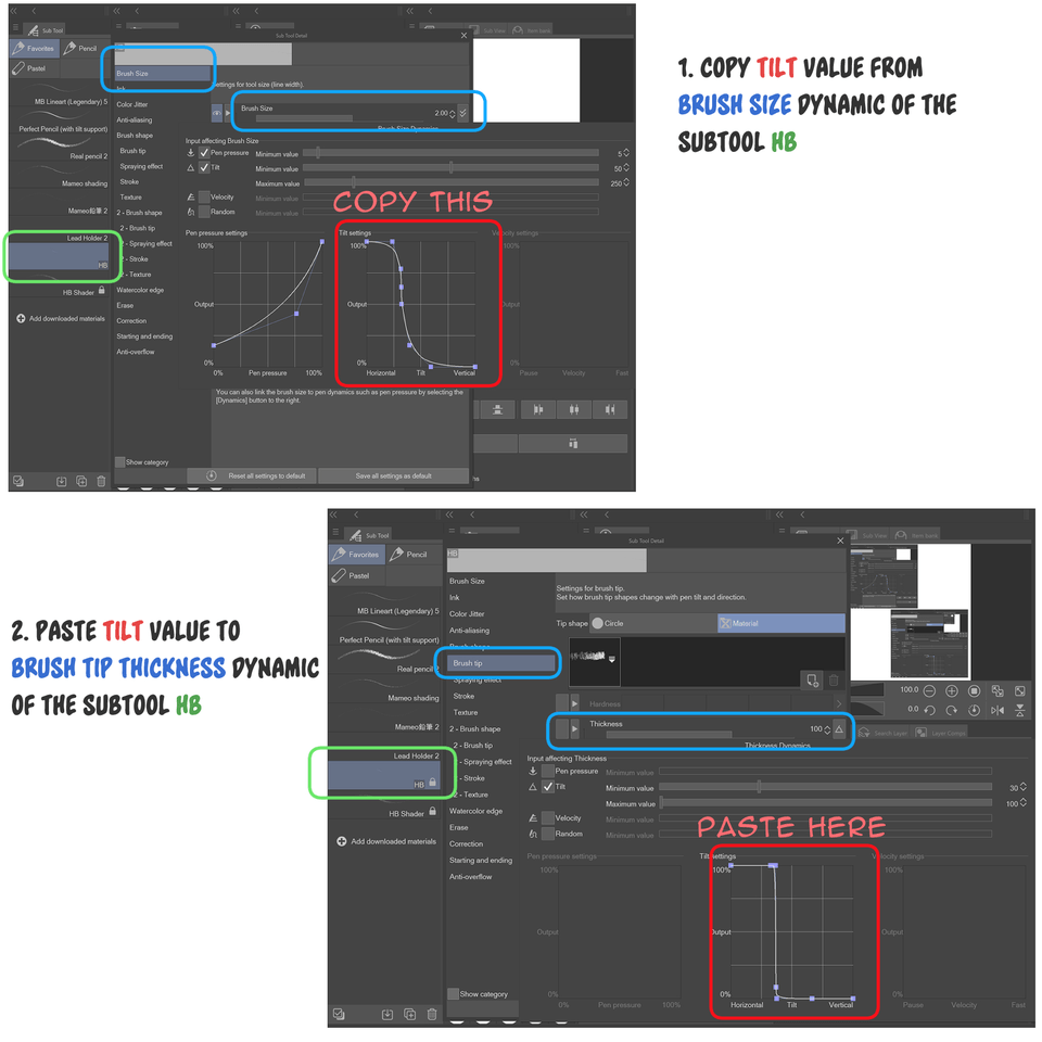 What I'm actually doing is trying to match the tilt curve for several properties, opacity, brush density, and brush size.