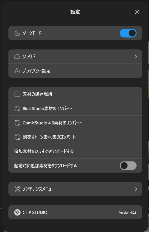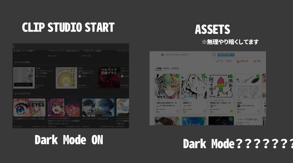 Clip Studio Assets Dark Mode